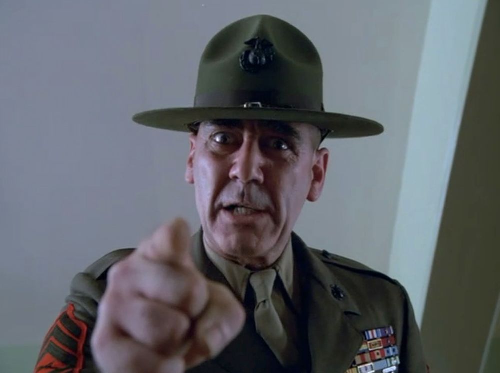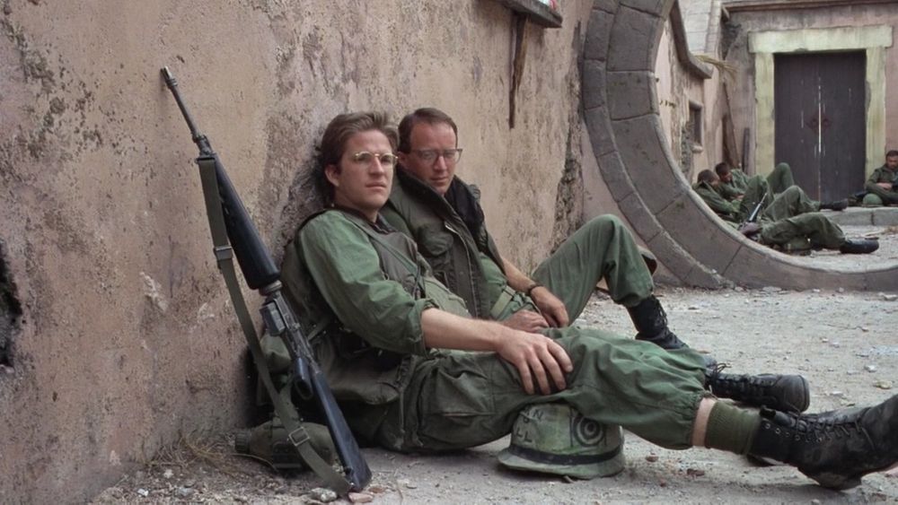 As they wrap up their coverage, Joker is approached and lectured by a belligerent colonel (Bruce Boa) who demands to know why Joker wears a peace symbol on his body armor when he also has the words 'Born to Kill' written on his helmet. Joker suggests it has to do with the "duality of Man" according to Jung. The cynical colonel doesn't believe him and tells him to "get with the program".