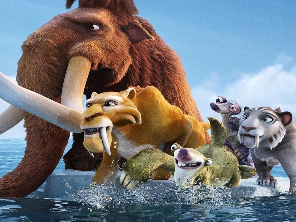 Finally the film ends with Scrat completing his journey and reaching the island on the map, Scratlantis (a parody of Atlantis); a floating city filled with other sabre-toothed squirrels and acorns. Scrat, excited and gleeful, grabs many acorns on the island in a frenzy and eventually grabs a giant one used as a plug blocking a hole, which causes the city to flood and sink, leaving Scrat in the middle of a desert in North America.